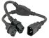 IEC320 C14 male plug with 2 IEC 320-C13 female connectors.